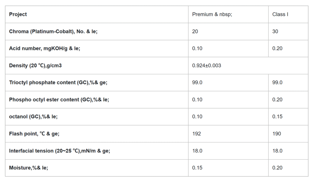 High-purity phosphate ester widely used as plasticizer, solvent, and antifoaming agent.